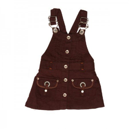 modelo del producto : es una jardinera , color marron , de mesclilla , con detalles de bolsillos